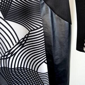 Cato Dress Women Size 6 Black White Leather Contrast Retro Abstract *