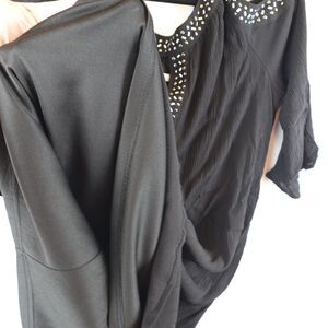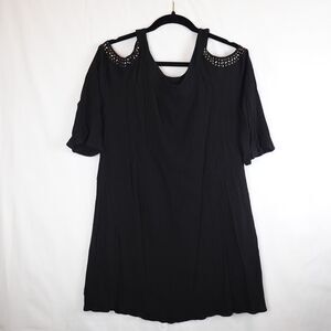 Cato EST. 1946 Blouse Women's Large Black Cold Shoulder Studded Keyhole Top