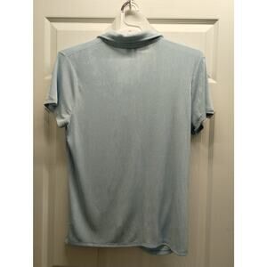 Cato EST 1946 Size Large Light Blue Stretch Button Up Short Sleeve Ruched Top