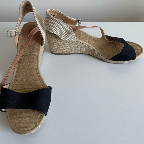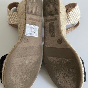 Cato Espadrilles Sandals Beige Black Canvas Wedge Heel Ankle Strap