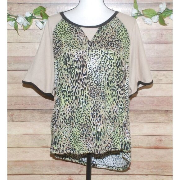 Cato Est. 1946 Green Leopard Print T-Shirt Top Size XL Stretch Short Sleeve