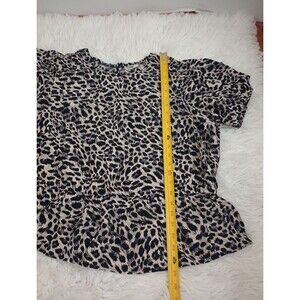 This Cato Est. 1946 Women's Animal Print Blouse in plus size 18/20W features a black and brown animal print with a round neck, short balloon sleeves, button closure, and waist elastic for a comfortable fit. Made of stretchy polyester with Rayon fabric, this blouse is suitable for various occasions from casual to formal. Perfect for winter, summer, fall, and spring, it adds a touch of style with its animal theme.