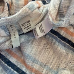 • Color: Multi-stripe (peach, navy, light blue, cream)
