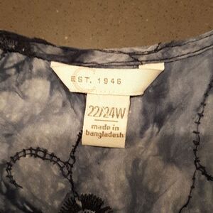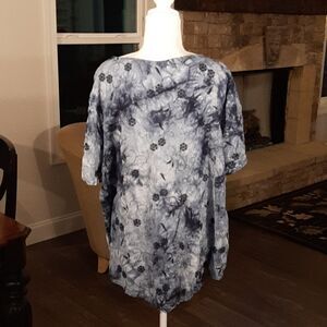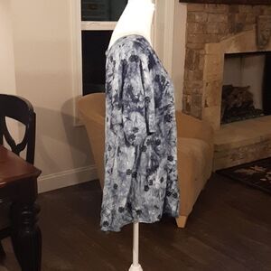 Cato Est.1946 22/24W Vee Neck Blue Flowy Shirt with Embroidered Flowers