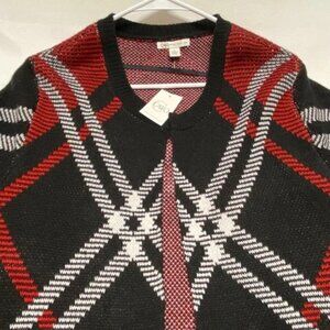 Cato Fashions Open Front Long Cardigan Duster Women's Large Black Red Plaid NWT