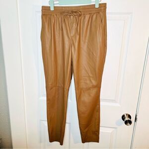 Cato Faux Leather Skinny Pants Leggings Ankle Length Cocoa Tan Brown Size Medium. Elastic drawstring waist has stretch. Slightly cropped raw edge hem. Buttery soft faux leather. Gently used Good Preowned Condition. Marker on brand tag. No holes or stains.