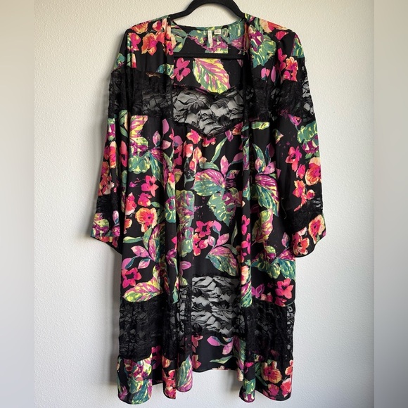 Elegant floral kimono featuring vibrant colors on a black background. ๐ธ๐