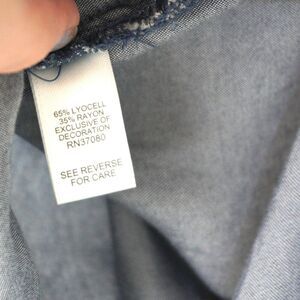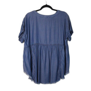 This is a Cato, EUC, embroidered chambray short sleeve top with hi-low hem. Small side slits at bottom hem. Sz L.