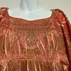 Cato soft tunic with a floral geometric design and sewn-in liner.