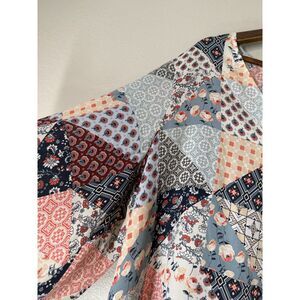 Cato Floral Multi Pattern Button Up V Neck Blouse Sz 18/20 Bishop Sleeve Boho