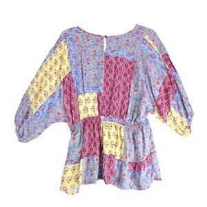 Cato Floral Patchwork Rayon Peasant Blouse Top Women's 2X Plus Dolman Sleeve Tiered
