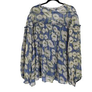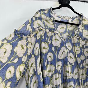 Cato Floral Periwinkle Green Ruffle Peasant Long Sleeve Flowy Blouse Women’s 3x