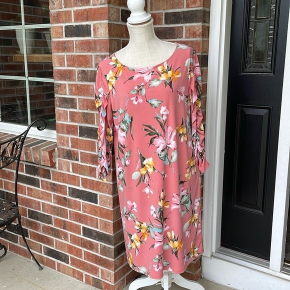 Cato Garnet Rose Floral Print Long Sleeve Dress