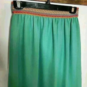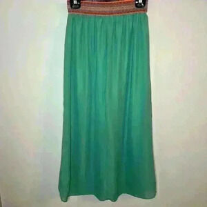Add a touch of bohemian style to your wardrobe with this beautiful maxi skirt from Cato Girls. The skirt features a solid turquoise color, layered with a liner, and a multicolored elastic waist for a comfortable fit. It is perfect for any occasion, whether you're attending a wedding, a party, or just going about your day-to-day activities.