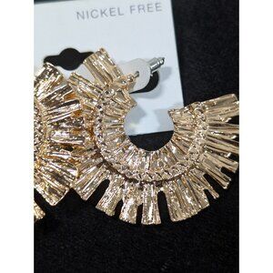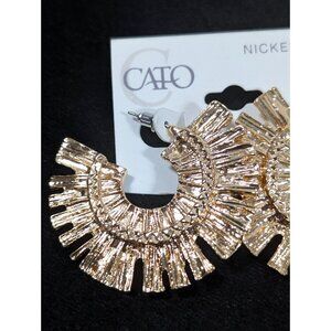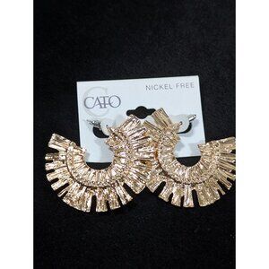 Cato Gold Tone Textured Half Hoop Boho Western Pierced Earrings NEW