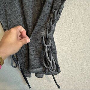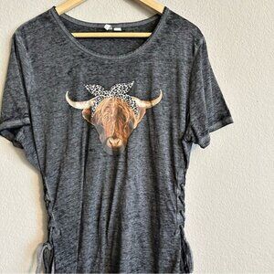 Cato Gray Highland Cow w/ Bandana Laces Up Sides Gray Graphic Tee Size XL