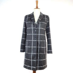 Cato Gray Windowpane Plaid Long Length Blazer Jacket XS