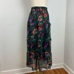 Cato Green Floral Sheer Tiered Maxi Skirt Cottagecore Boho Romantic Sz 18/20W 2X