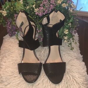 Cato Heels Ankle Strap Back Zip Black Snakeskin size 7