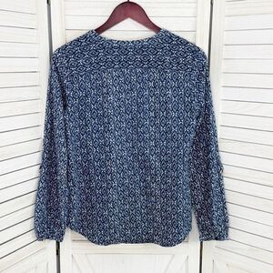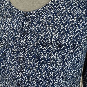 Cato Ikat Diamond Print Button Up Shirt Blue White Small Long Sleeve