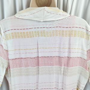 🍑Cato Ivory Striped Lightweight Adjustable Roll Tab Long Sleeve Duster Large