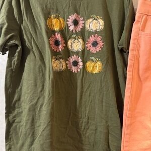 Girls green top with multicolored pumpkins and matching peach colored jeans new with tags from Cato kids line charlotte size 10