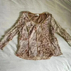 Cato Lace Bronze Colored Long Sleeve Blouse Size XL Casual Formal Office Wear
