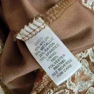 Shell is made from 40% nylon, 30% metallic, 20% rayon, 10% spandex.