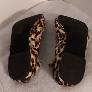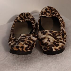 Step out in style with these chic leopard print flats. Size 8M. Cushioned insoles for comfort. Perfect for any occasion, these shoes offer both comfort and fashion.