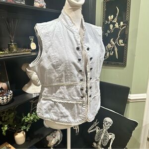 Cato Light Blue Denim Sleeveless Vest with White Lace Trim Size Large
