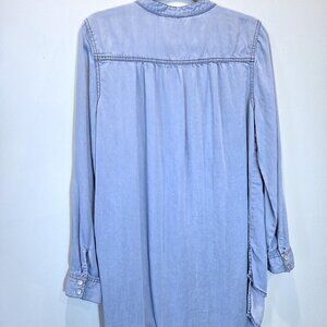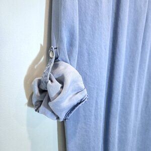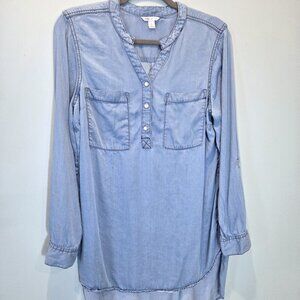 Cato Light Blue Denim Tunic Blouse with convertible sleeve tabs