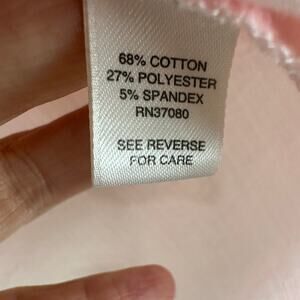 Fabric: 68% cotton, 27% polyester, 5% spandex, machine wash cold, tumble dry low, iron if necessary. Made in Bangladesh.