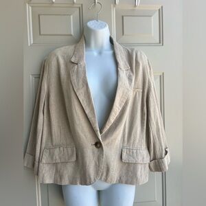 Cato Linen Blazer Womens Size XL Beige Basic Minimal Coastal Simple Jacket