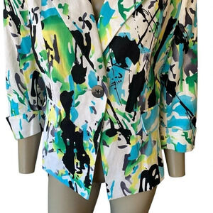 Cato Linen Blend 3/4 Sleeve Buttoned Blazer Fitted Jacket Size 14P Watercolor