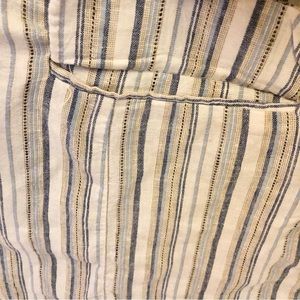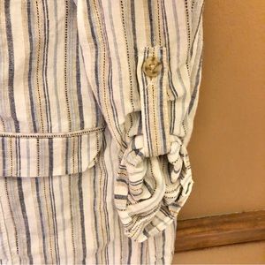 Cato Linen Blend Striped Blazer blue white Medium. Roll tab sleeves. Faux pockets. Button front. Lightweight. Shoulder pads. Good preowned condition.