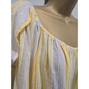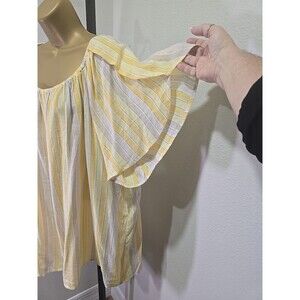 Cato Linen Blend Yellow Stripe Blouse Womens 22 24 Metallic Thread Flutter Boho