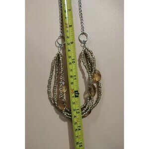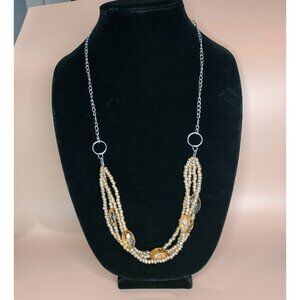 Cato Long Multi Strand Necklace Beaded Layered Chain Statement Jewelry Cream Tan