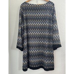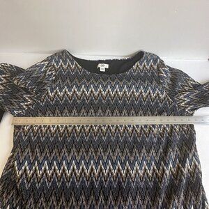 Cato Mini Sheath Dress Womens 22/24W Chevron Zig Zag Knit Pullover Black Hem