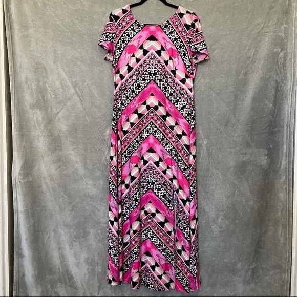Cato Multi-Color Print Short Sleeve Shirt Maxi Dress Size Petite Large NWT