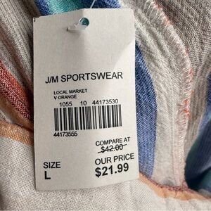Cato Multicolor Striped Wide Leg Pants Linen Blend Size Large NWT