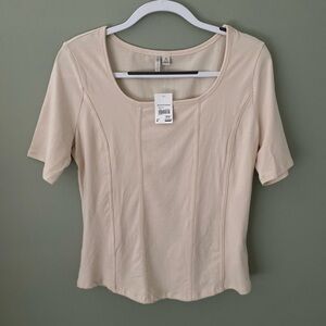 Cato NWT Women's Cream Colored Short Sleeve Top Size Medium