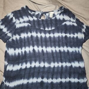 Stylish tie-dye pattern. Short sleeves. Keyhole back detail.