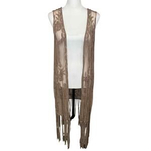 Cato New With Tags Brown Lace Sleeveless Long Fringe Vest Size 22/24