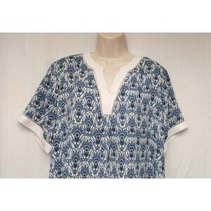 Cato Notched V-Neck Chiffon Pleated Womens Blue & White Short Sleeve Floral Top Size 18/20W.