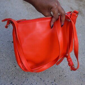 Strap: Features a long, thin, adjustable Solid Red Faux Leather Strap, allowing it to be worn as a true Crossbody Bag for hands-free comfort or adjusted to a shoulder bag length.