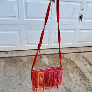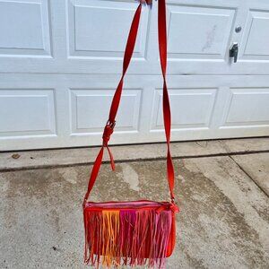 Cato Ombre Fringe Crossbody Purse Red Orange Pink Festival Boho Bag NWOT