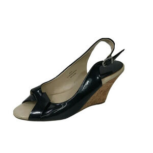 Cato Open Toe Cork Wedge Heels Slingback Women Size 9 M Black Patent Leather