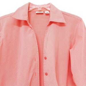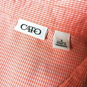 This Cato orange checked button-down blouse shacket is a stylish and versatile addition to your wardrobe! It is in very good preowned condition. The 3/4 sleeves add a touch of sophistication, making it perfect for casual or dressy occasions.