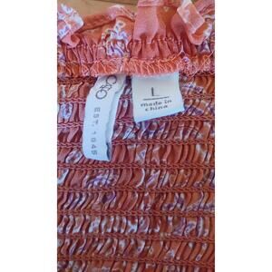 Cato Orange Smocked Top Ruffles on Collar and Sleeves Peplum Hem Women's Large