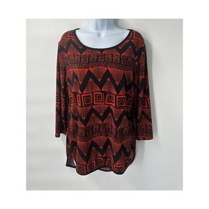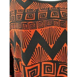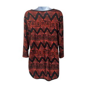 Cato Orange/Black Printed 3/4 Sleeves Hi Low Tunic Top Small
